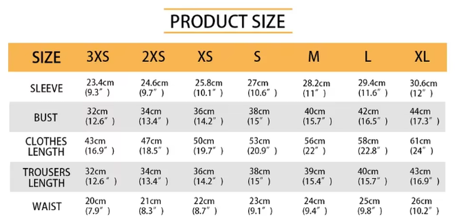 Size: 3XS, 2XS, XS, S, M, L-XL (please mark it in the note)